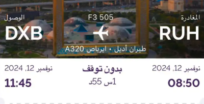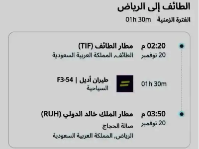 رحلة من الرياض الى ابها يوم الاحد 8 ديسمبر