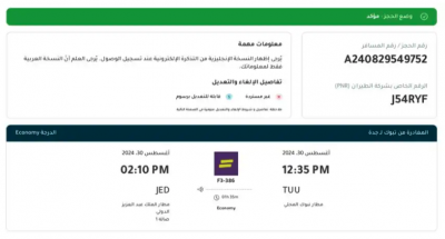 تذكره طيران الخطوط السعوديه من جده للرياض الاربعاء