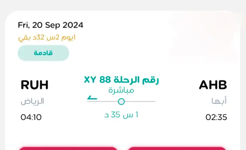 رحلة من ابها للرياض اليوم الخميس الساعه 2:35 والوصول الى الرياض 4:10 الرحلة الخميس اخر الليل فجر الجمعه