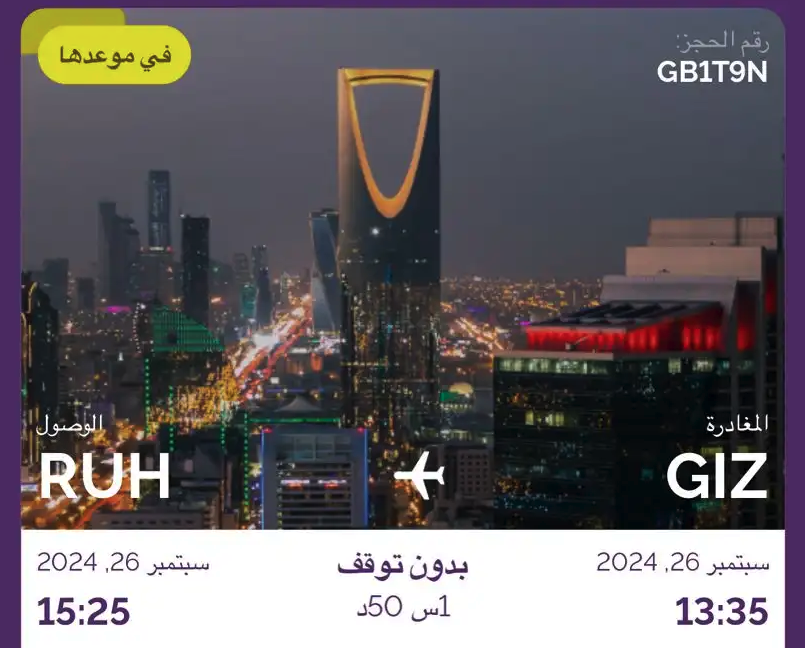 تذكرة طيران من الرياض الى ابها يوم 24 بعد سته ايام