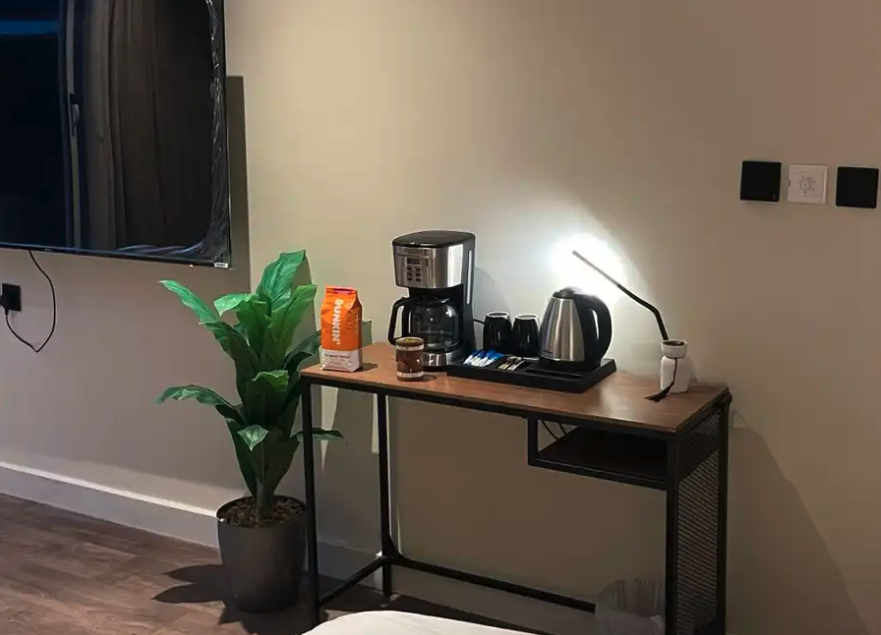 موقع مثالي يتيح لك التنقل بسهولة وسرعة. مزود بشاشة 65 بوصة واشتراكات نتفليكس، ويوتيوب و ركن قهوة لتجربة ترفيهية مميزة. استمتع بالراحة والإقامة الفاخرة في هذا المكان الاستثنائي!