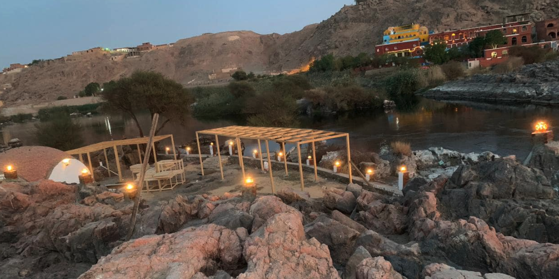مخيم اسوان الجديد على النيل مباشرة ويوجد اقامة فندقية