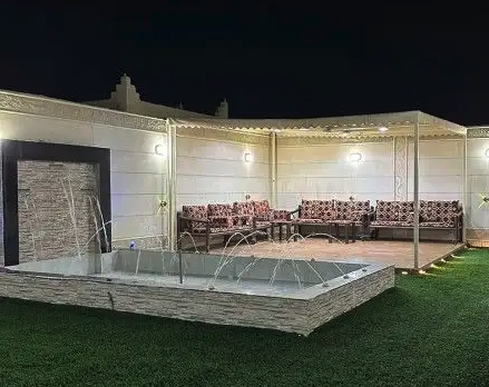 مجلس كبير مقلط مطبخ دوره مياه جلسه خارجيه شلالات نوافير مسطح اخضر